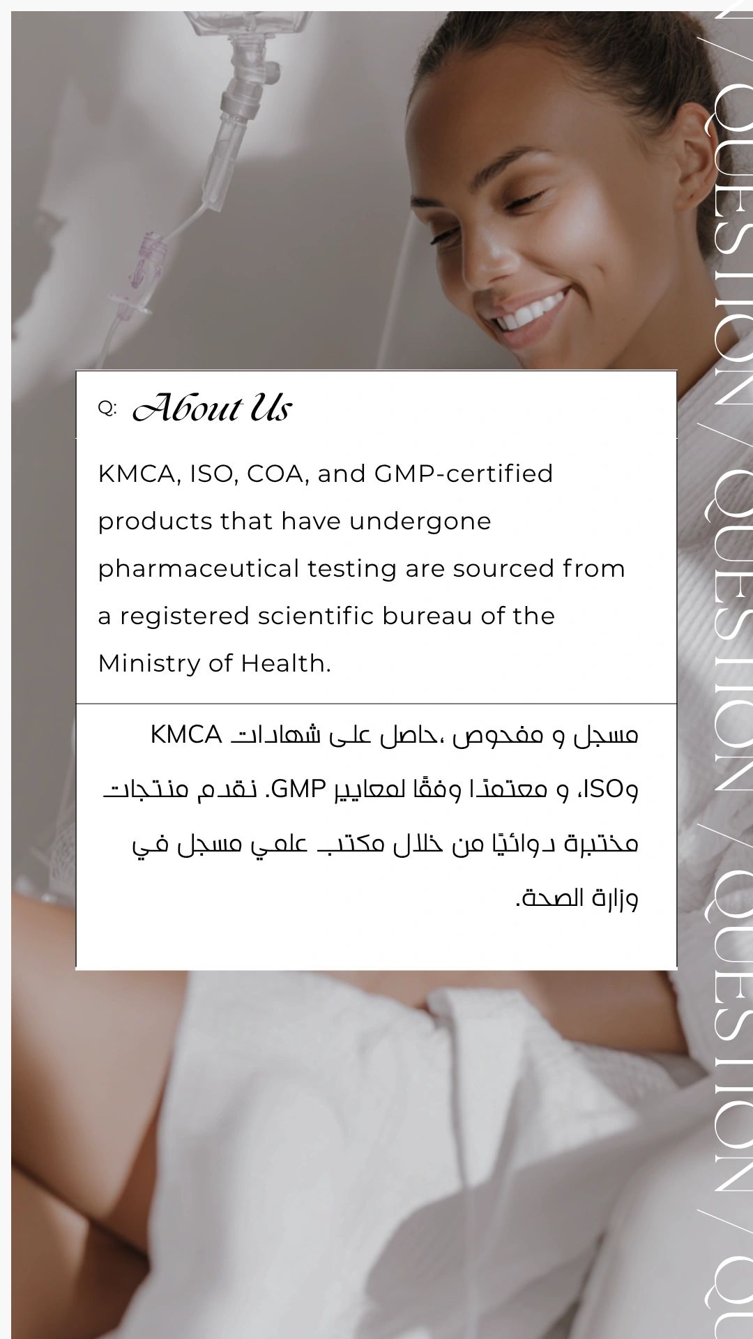 From our flagship location in Al-Mansour, Baghdad, we serve clients across Iraq, partnering with top clinics, beauty centers, and wellness specialists. Every session is more than just a drip — it’s an exclusive wellness ritual delivered in a luxurious and professional setting, guided by expert medical practitioners.